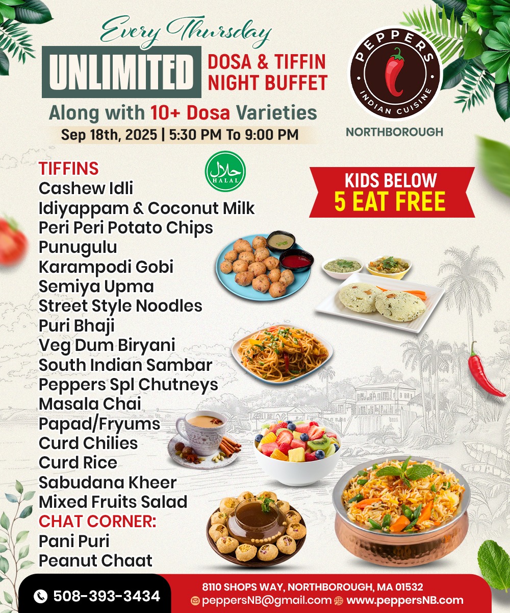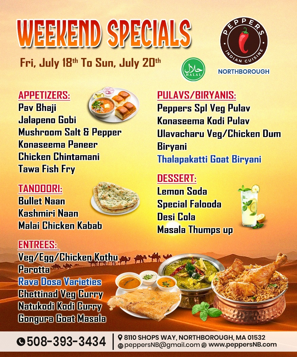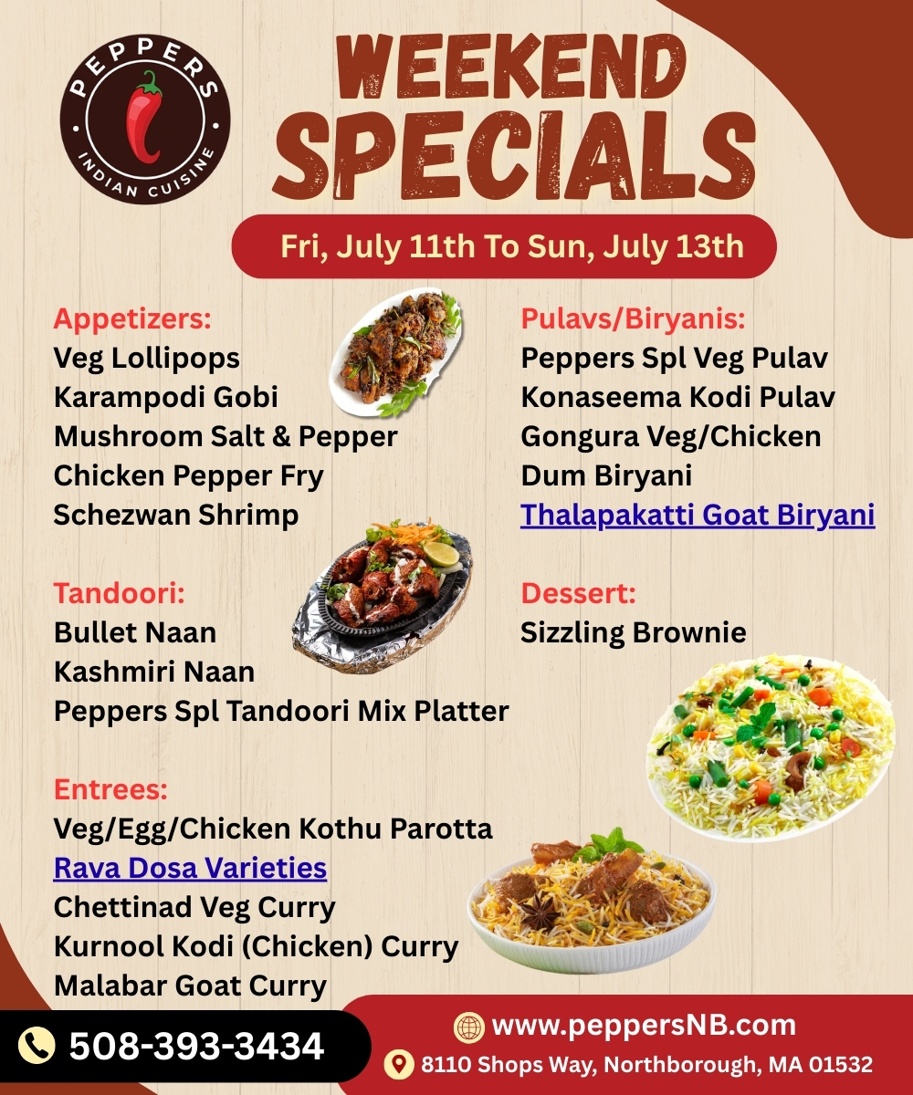 Parottas chopped up and sauteed with spices, chicken and saalna on Tawa. Served with Saalna and Raitha on the side.