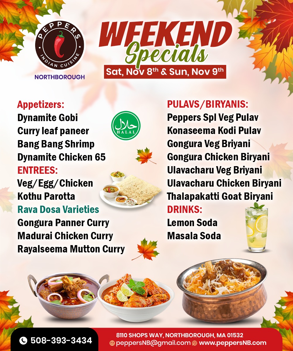 Pulav made of Basmati rice mixed with boneless chicken sauteed in Peppers special sauce